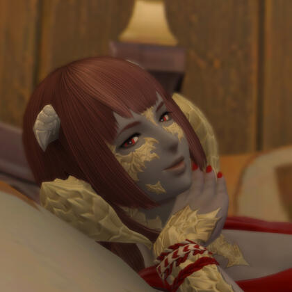 Something most will never know, but might if they grew up around Bukyo, is that Sugi Tatewaki did not always exist. Born as Shizuka Fujiwara, the only daughter of a court officer, she still holds the looks of the young girl who found her demise in the blaze of a spilt lamp on the eve of her wedding... Maybe some might recognize her even with her ruined voice?And escaped to Eorzea nearly a decade ago now, she eventually found her way to Ul'dah, where between a glass of whiskey too many and a few brawls she reached the doors of the Winking Paissa, still known as The Melting Daggers at the time, where she learnt a new trade and found in it her passion, becoming one of its most precious (and rambunctious) assets.